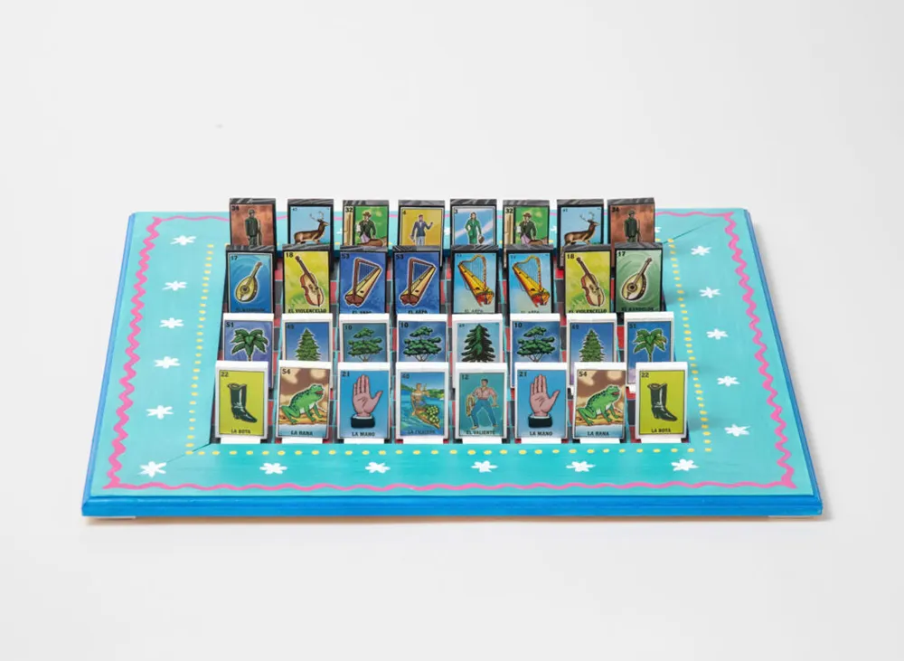 The WCHOF’s collection also includes a chess set based on the game Loteriá, which is not specifically from Mexico but related to Mexican culture. Loteriá is a game of chance, with similarities to Bingo. The Loteriá Chess Set was created with important figures of the game represented. This set was created by artist Gloria Gurrola-Graciano, who is based in Banning, California, and was exhibited as the Featured Chess Set in May 2023.