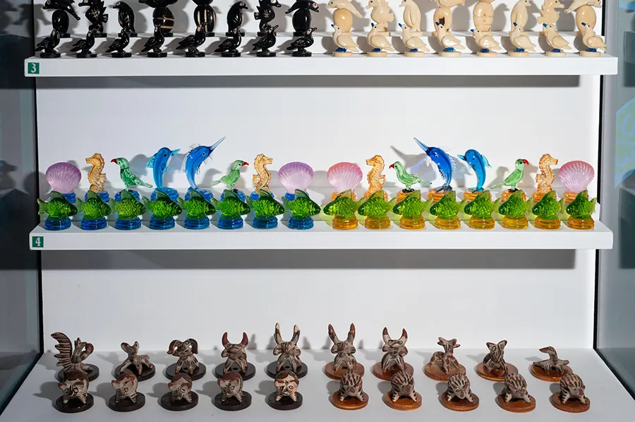 Visit the WCHOF to see the sets in this rotating display yourself. From 3D-printed chess sets to one-of-a-kind artistic creations, the Featured Set Project shows how the ancient game has inspired artists and creators for centuries. Each set is only on view for a month at a time, so visit often to see a new set!